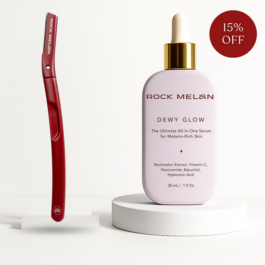 Together, they offer a layered ritual — mechanical exfoliation + multi-active hydration — made to support melanin-rich skin without overdoing it.